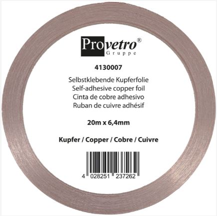 Bakrena folija obična, samoljepljiva dimenzije 20 x 6,4 mm. Koristi se u tiffany tehnici, fuziji stakla...