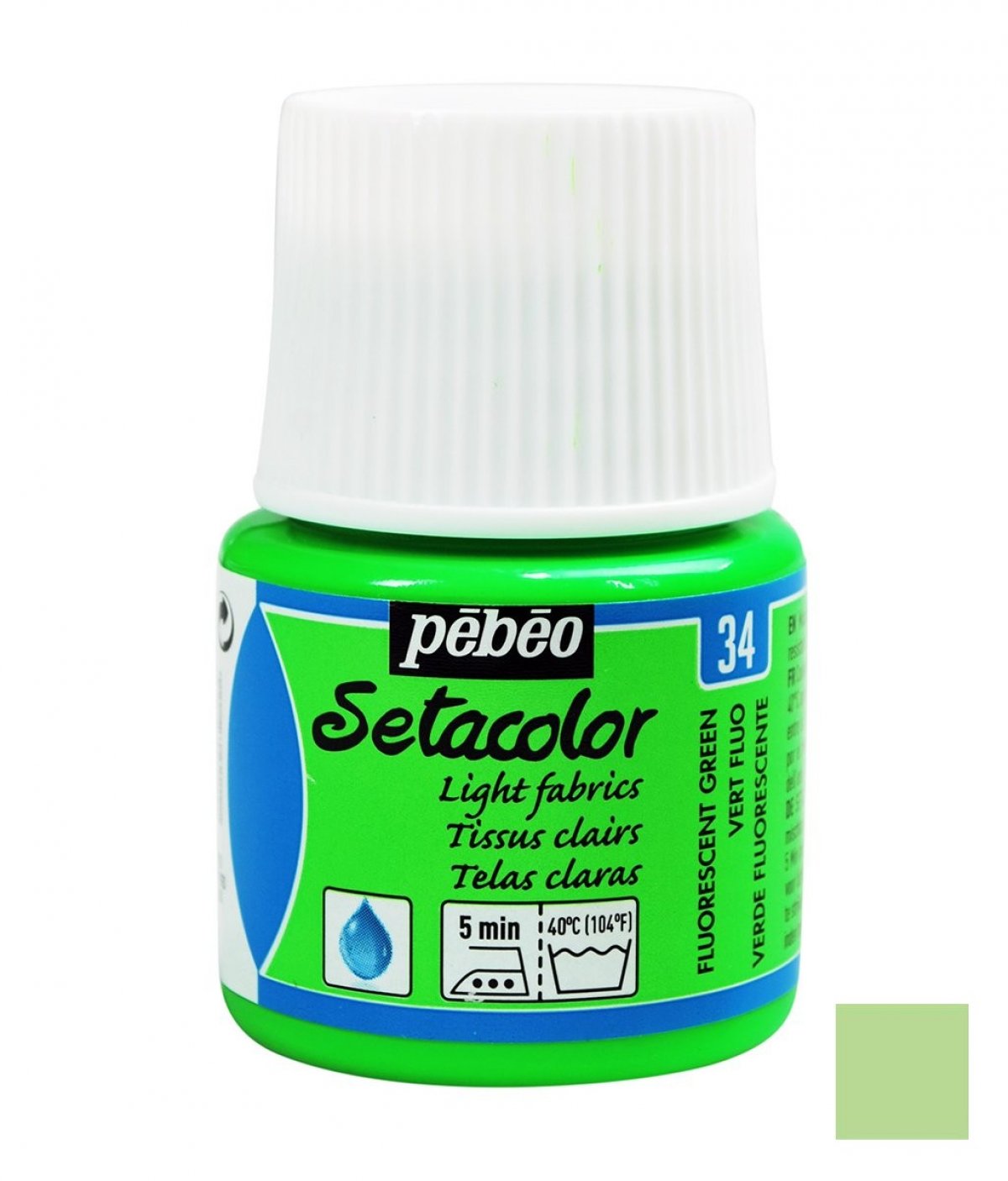 Setacolor fluorescentne boje za oslikavanje svijetlih tkanina. Boje imaju laganu teksturu tako da se neće promijeniti fleksibilnost i mekoća i najosjetljivijih tkanina. Nanose se kistom, spužvastim valjkom, sitotiskom, pečatima, preko šablona...