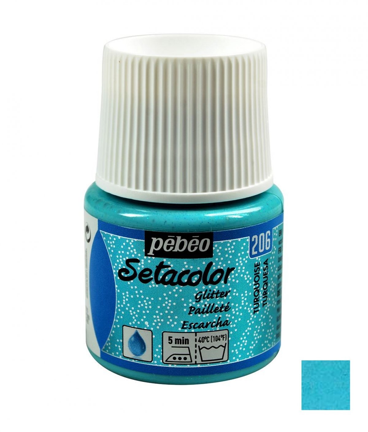 Setacolor prozirne boje s glitterima za oslikavanje svijetlih tkanina. Boje su pomiješane s glitterima u istim ili sličnim nijansama, imaju laganu teksturu tako da se neće promijeniti fleksibilnost i mekoća tkanine. Nanose se kistom, spužvastim valjkom, sitotiskom, pečatima, preko šablona... Nakon sušenja fiksiraju se glačalom ili fenom. Oslikane tkanine mogu se prati do 40°C.