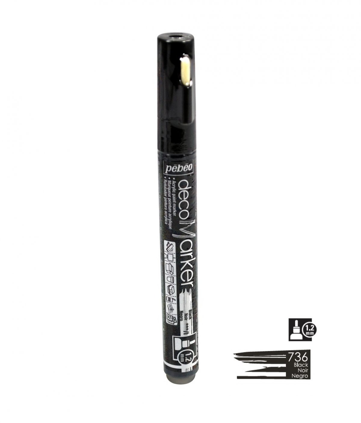 Akrilni marker na bazi vode s okruglim vrhom 1,2mm. Koristi se za crtanje, pisanje, slikanje, dekoriranje na različitim podlogama ukljčujući papir, karton, staklo, metal, keramiku, plastiku, platno... Za porozne površine poput drva i gipsa najprije treba nanijeti jedan sloj bijelog gessa. Prije upotrebe marker dobro protresti. Kako bi boja krenula potrebno je na komadiću papira pritisnuti vrhom markera nekoliko puta. Prije dekoriranja napravite test na željenoj površini. Nakon upotrebe markeri se odlažu vodoravno. Brzo se suši, na dodir u roku od 30 minuta, a potpuno od 6-12 sati. Nakon sušenja boje su pokrivne, intenzivne i trajne. Marker je potpuno iskoristiv jer u pakiranju dolazi rezervni vrh, u slučaju da se ošteti, može se lako zamijeniti.