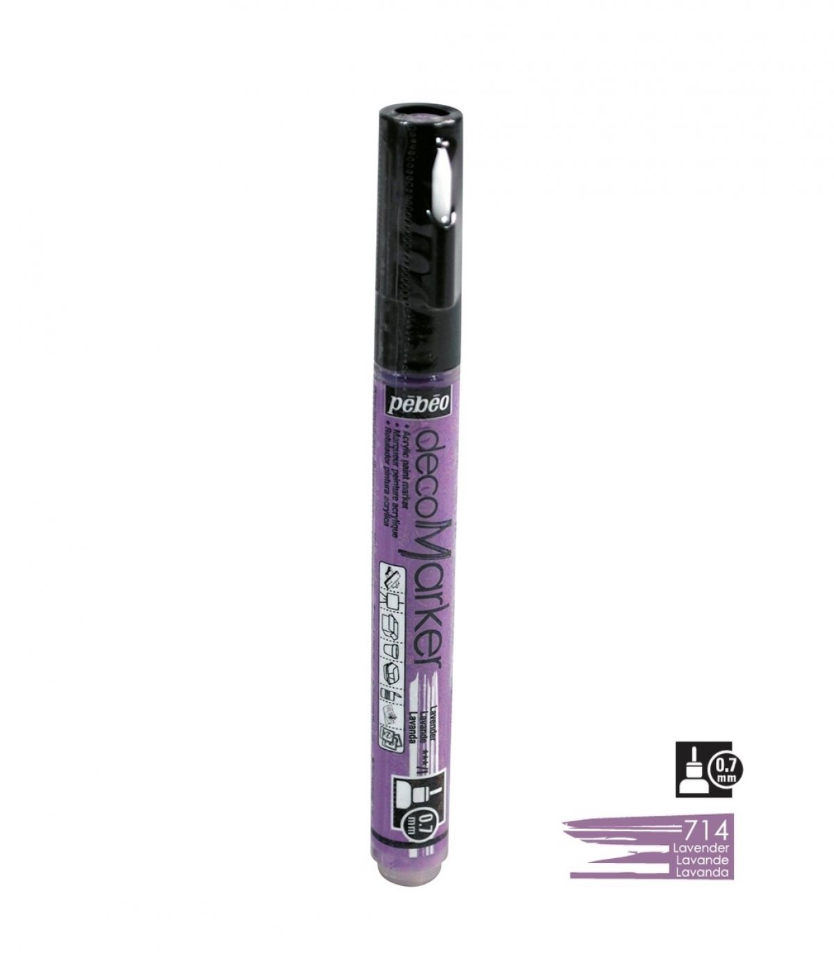 Akrilni marker na bazi vode s okruglim vrhom 1,2mm. Koristi se za crtanje, pisanje, slikanje, dekoriranje na različitim podlogama ukljčujući papir, karton, staklo, metal, keramiku, plastiku, platno... Za porozne površine poput drva i gipsa najprije treba nanijeti jedan sloj bijelog gessa. Prije upotrebe marker dobro protresti. Kako bi boja krenula potrebno je na komadiću papira pritisnuti vrhom markera nekoliko puta. Prije dekoriranja napravite test na željenoj površini. Nakon upotrebe markeri se odlažu vodoravno. Brzo se suši, na dodir u roku od 30 minuta, a potpuno od 6-12 sati. Nakon sušenja boje su pokrivne, intenzivne i trajne. Marker je potpuno iskoristiv jer u pakiranju dolazi rezervni vrh, u slučaju da se ošteti, može se lako zamijeniti.