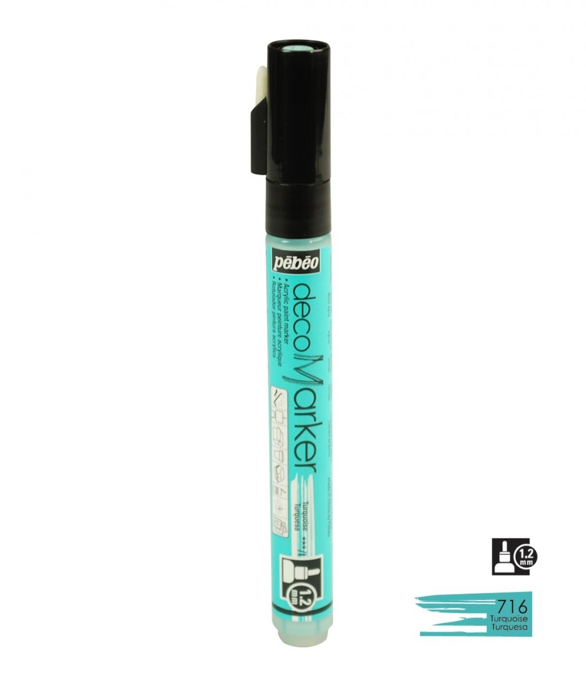 Akrilni marker na bazi vode s okruglim vrhom 1,2mm. Koristi se za crtanje, pisanje, slikanje, dekoriranje na različitim podlogama ukljčujući papir, karton, staklo, metal, keramiku, plastiku, platno... Za porozne površine poput drva i gipsa najprije treba nanijeti jedan sloj bijelog gessa. Prije upotrebe marker dobro protresti. Kako bi boja krenula potrebno je na komadiću papira pritisnuti vrhom markera nekoliko puta. Prije dekoriranja napravite test na željenoj površini. Nakon upotrebe markeri se odlažu vodoravno. Brzo se suši, na dodir u roku od 30 minuta, a potpuno od 6-12 sati. Nakon sušenja boje su pokrivne, intenzivne i trajne. Marker je potpuno iskoristiv jer u pakiranju dolazi rezervni vrh, u slučaju da se ošteti, može se lako zamijeniti.