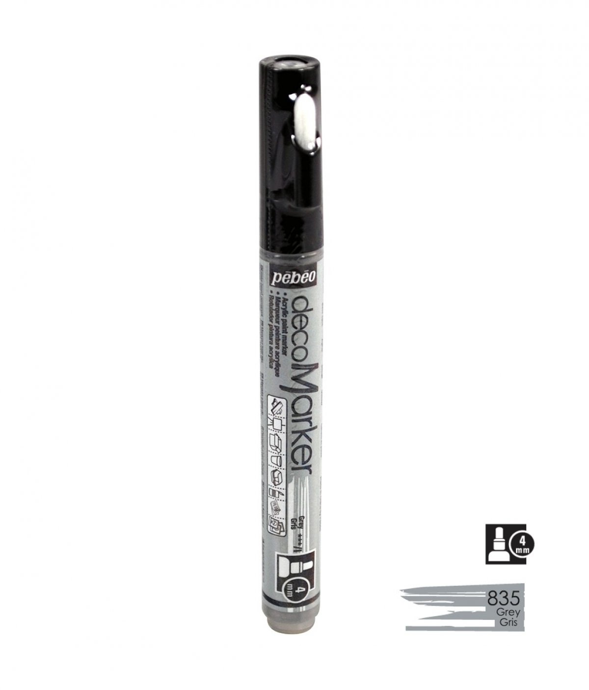 Akrilni marker na bazi vode s okruglim vrhom 4mm. Koristi se za crtanje, pisanje, slikanje, dekoriranje na različitim podlogama ukljčujući papir, karton, staklo, metal, keramiku, plastiku, platno... Za porozne površine poput drva i gipsa najprije treba nanijeti jedan sloj bijelog gessa. Prije upotrebe marker dobro protresti. Kako bi boja krenula potrebno je na komadiću papira pritisnuti vrhom markera nekoliko puta. Prije dekoriranja napravite test na željenoj površini. Nakon upotrebe markeri se odlažu vodoravno. Brzo se suši, na dodir u roku od 30 minuta, a potpuno od 6-12 sati. Nakon sušenja boje su pokrivne, intenzivne i trajne. Marker je potpuno iskoristiv jer u pakiranju dolazi rezervni vrh, u slučaju da se ošteti, može se lako zamijeniti.