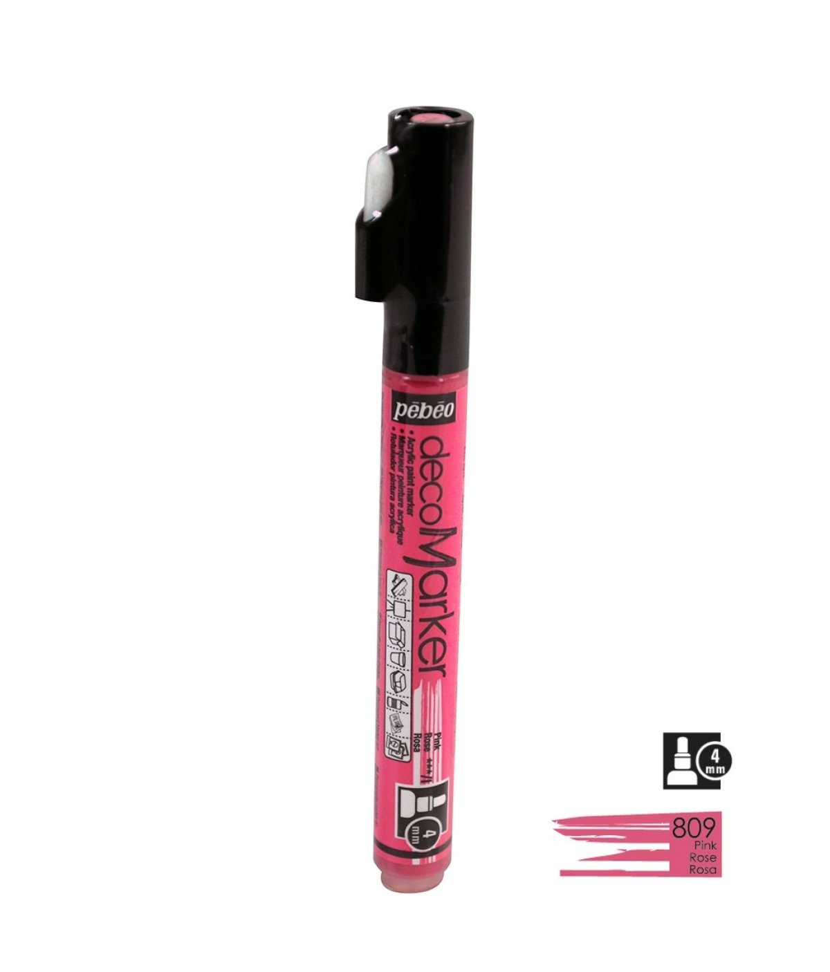 Akrilni marker na bazi vode s okruglim vrhom 4mm. Koristi se za crtanje, pisanje, slikanje, dekoriranje na različitim podlogama ukljčujući papir, karton, staklo, metal, keramiku, plastiku, platno... Za porozne površine poput drva i gipsa najprije treba nanijeti jedan sloj bijelog gessa. Prije upotrebe marker dobro protresti. Kako bi boja krenula potrebno je na komadiću papira pritisnuti vrhom markera nekoliko puta. Prije dekoriranja napravite test na željenoj površini. Nakon upotrebe markeri se odlažu vodoravno. Brzo se suši, na dodir u roku od 30 minuta, a potpuno od 6-12 sati. Nakon sušenja boje su pokrivne, intenzivne i trajne. Marker je potpuno iskoristiv jer u pakiranju dolazi rezervni vrh, u slučaju da se ošteti, može se lako zamijeniti.