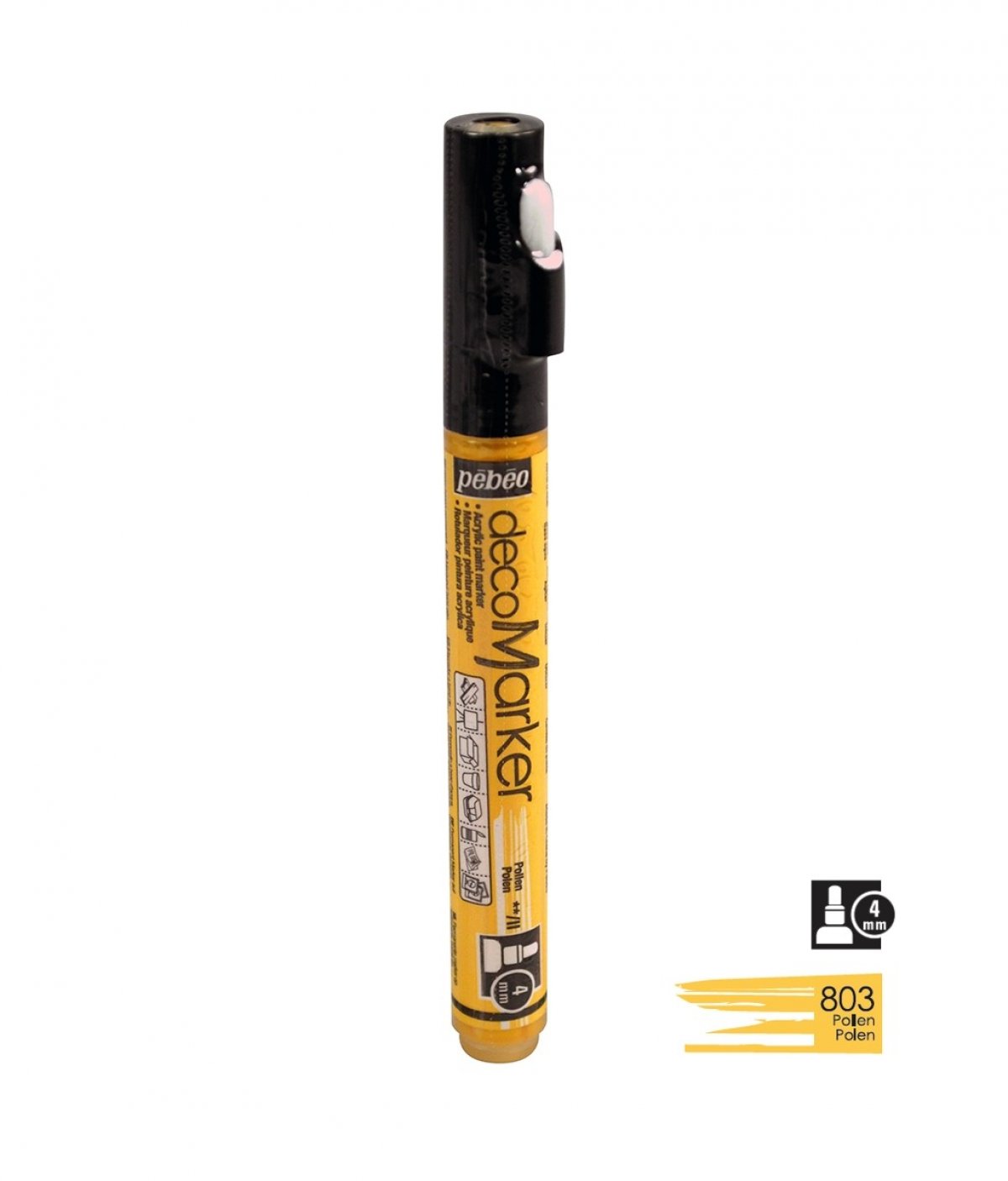 Akrilni marker na bazi vode s okruglim vrhom 4mm. Koristi se za crtanje, pisanje, slikanje, dekoriranje na različitim podlogama ukljčujući papir, karton, staklo, metal, keramiku, plastiku, platno... Za porozne površine poput drva i gipsa najprije treba nanijeti jedan sloj bijelog gessa. Prije upotrebe marker dobro protresti. Kako bi boja krenula potrebno je na komadiću papira pritisnuti vrhom markera nekoliko puta. Prije dekoriranja napravite test na željenoj površini. Nakon upotrebe markeri se odlažu vodoravno. Brzo se suši, na dodir u roku od 30 minuta, a potpuno od 6-12 sati. Nakon sušenja boje su pokrivne, intenzivne i trajne. Marker je potpuno iskoristiv jer u pakiranju dolazi rezervni vrh, u slučaju da se ošteti, može se lako zamijeniti.
