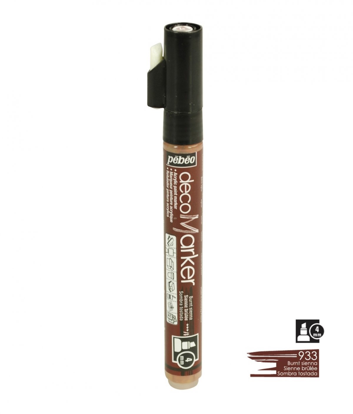 Akrilni marker na bazi vode sa kosim vrhom 4mm. Koristi se za crtanje, pisanje, slikanje, dekoriranje na različitim podlogama ukljčujući papir, karton, staklo, metal, keramiku, plastiku, platno... Za porozne površine poput drva i gipsa najprije treba nanijeti jedan sloj bijelog gessa. Prije upotrebe marker dobro protresti. Kako bi boja krenula potrebno je na komadiću papira pritisnuti vrhom markera nekoliko puta. Prije dekoriranja napravite test na željenoj površini. Nakon upotrebe markeri se odlažu vodoravno. Brzo se suši, na dodir u roku od 30 minuta, a potpuno od 6-12 sati. Nakon sušenja boje su pokrivne, intenzivne i trajne. Marker je potpuno iskoristiv jer u pakiranju dolazi rezervni vrh, u slučaju da se ošteti, može se lako zamijeniti.