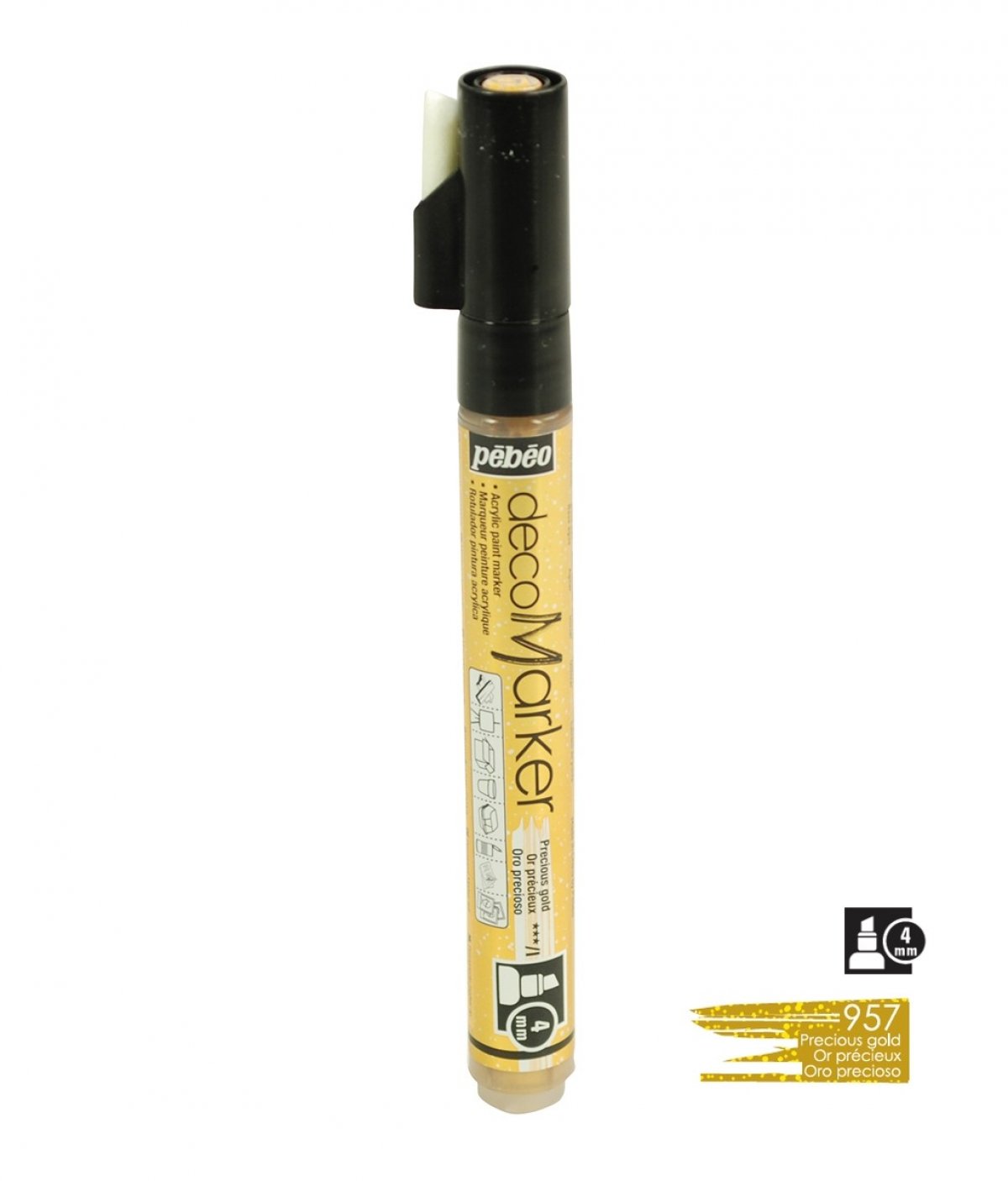 Akrilni efektni marker na bazi vode sa kosim vrhom 4mm. Koristi se za crtanje, pisanje, slikanje, dekoriranje na različitim podlogama ukljčujući papir, karton, staklo, metal, keramiku, plastiku, platno... Za porozne površine poput drva i gipsa najprije treba nanijeti jedan sloj bijelog gessa. Prije upotrebe marker dobro protresti. Kako bi boja krenula potrebno je na komadiću papira pritisnuti vrhom markera nekoliko puta. Prije dekoriranja napravite test na željenoj površini. Nakon upotrebe markeri se odlažu vodoravno. Brzo se suši, na dodir u roku od 30 minuta, a potpuno od 6-12 sati. Nakon sušenja boje su pokrivne, intenzivne i trajne. Marker je potpuno iskoristiv jer u pakiranju dolazi rezervni vrh, u slučaju da se ošteti, može se lako zamijeniti.