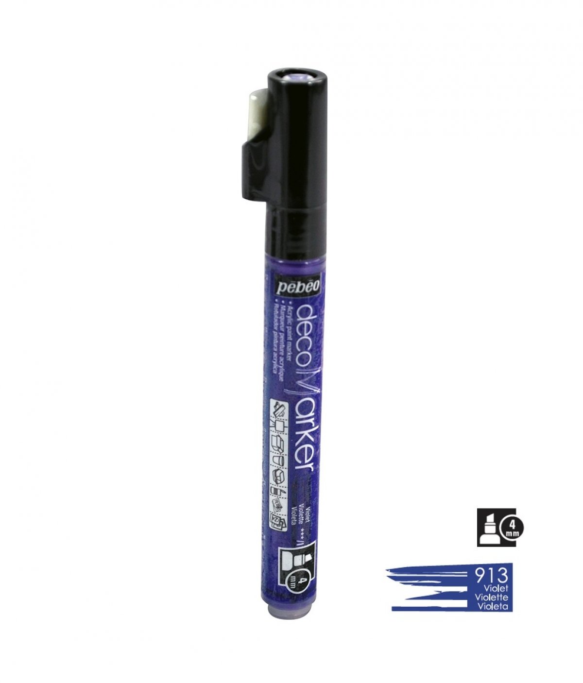 Akrilni marker na bazi vode sa kosim vrhom 4mm. Koristi se za crtanje, pisanje, slikanje, dekoriranje na različitim podlogama ukljčujući papir, karton, staklo, metal, keramiku, plastiku, platno... Za porozne površine poput drva i gipsa najprije treba nanijeti jedan sloj bijelog gessa. Prije upotrebe marker dobro protresti. Kako bi boja krenula potrebno je na komadiću papira pritisnuti vrhom markera nekoliko puta. Prije dekoriranja napravite test na željenoj površini. Nakon upotrebe markeri se odlažu vodoravno. Brzo se suši, na dodir u roku od 30 minuta, a potpuno od 6-12 sati. Nakon sušenja boje su pokrivne, intenzivne i trajne. Marker je potpuno iskoristiv jer u pakiranju dolazi rezervni vrh, u slučaju da se ošteti, može se lako zamijeniti.