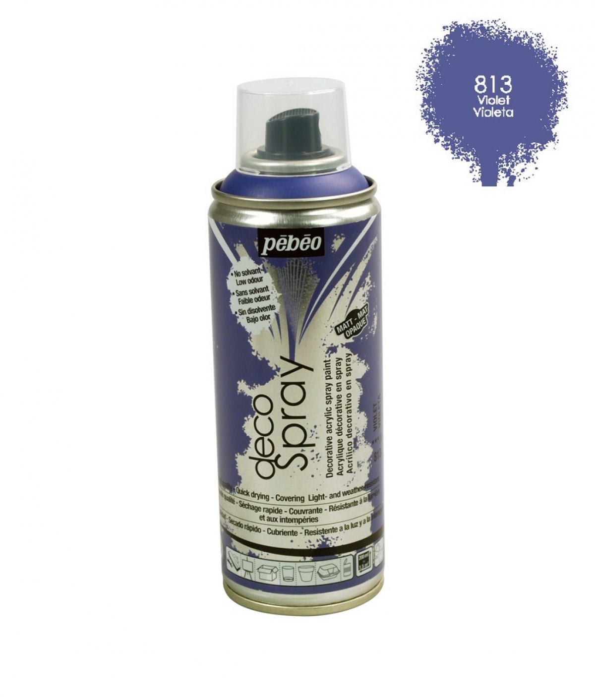 Akrilni mat sprej 200ml na bazi vode za dekoriranje raznih površina npr.drvo, plastika, karton, papir, metal, platno, gips, keramika, staklo... Koristi se za ravnomjerno nanošenje boje na veće površine. Namijenjen je za vanjsku i unutarnju upotrebu. Prilagođen je umjetnicima, hobistima i dekoraterima.