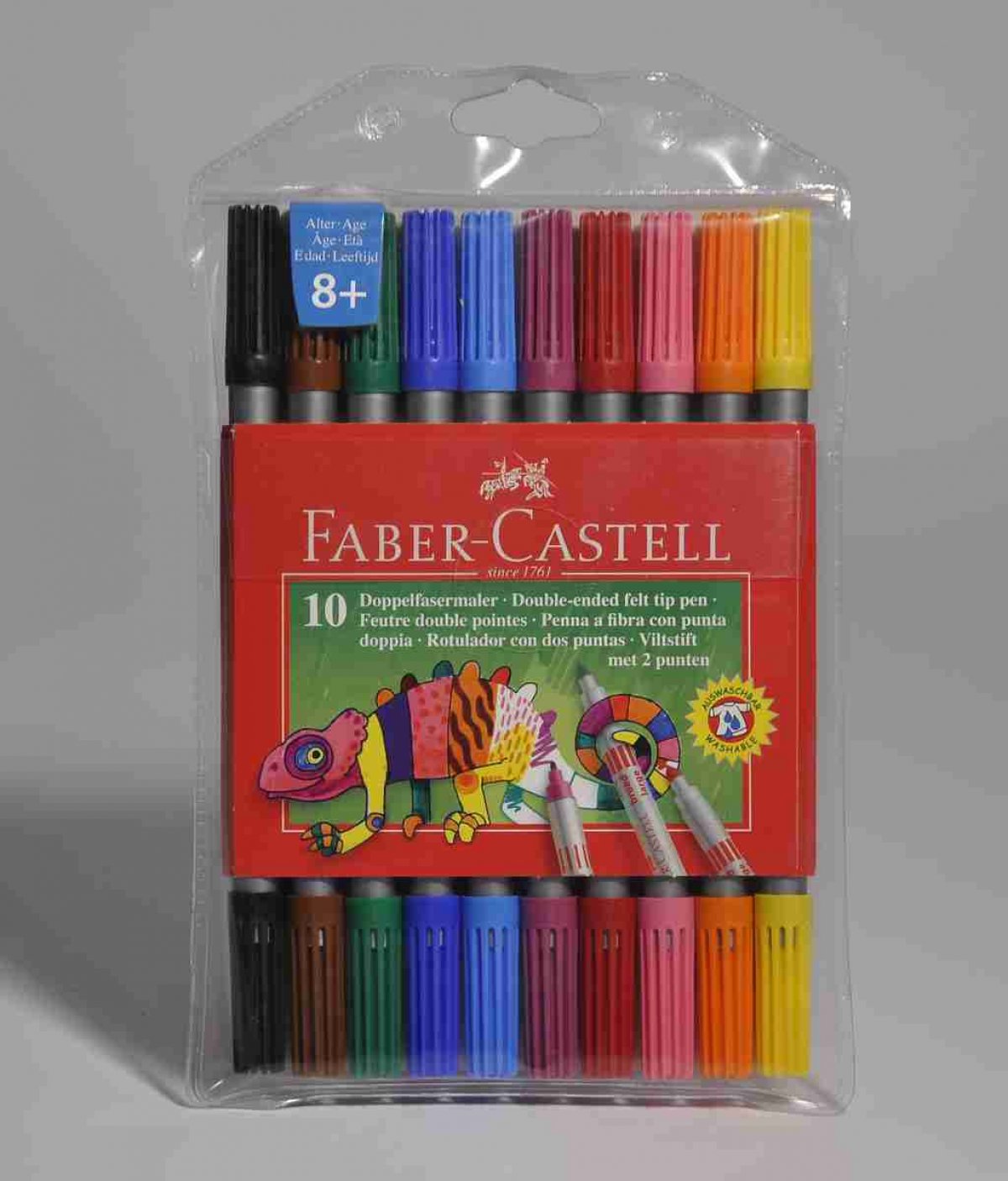 Flomasteri Faber Castell školski - obostrani, sa dvije debljine, lako se peru, na bazi vode su, set od 10 boja nalazi se zapakiran u PVC etui-u.