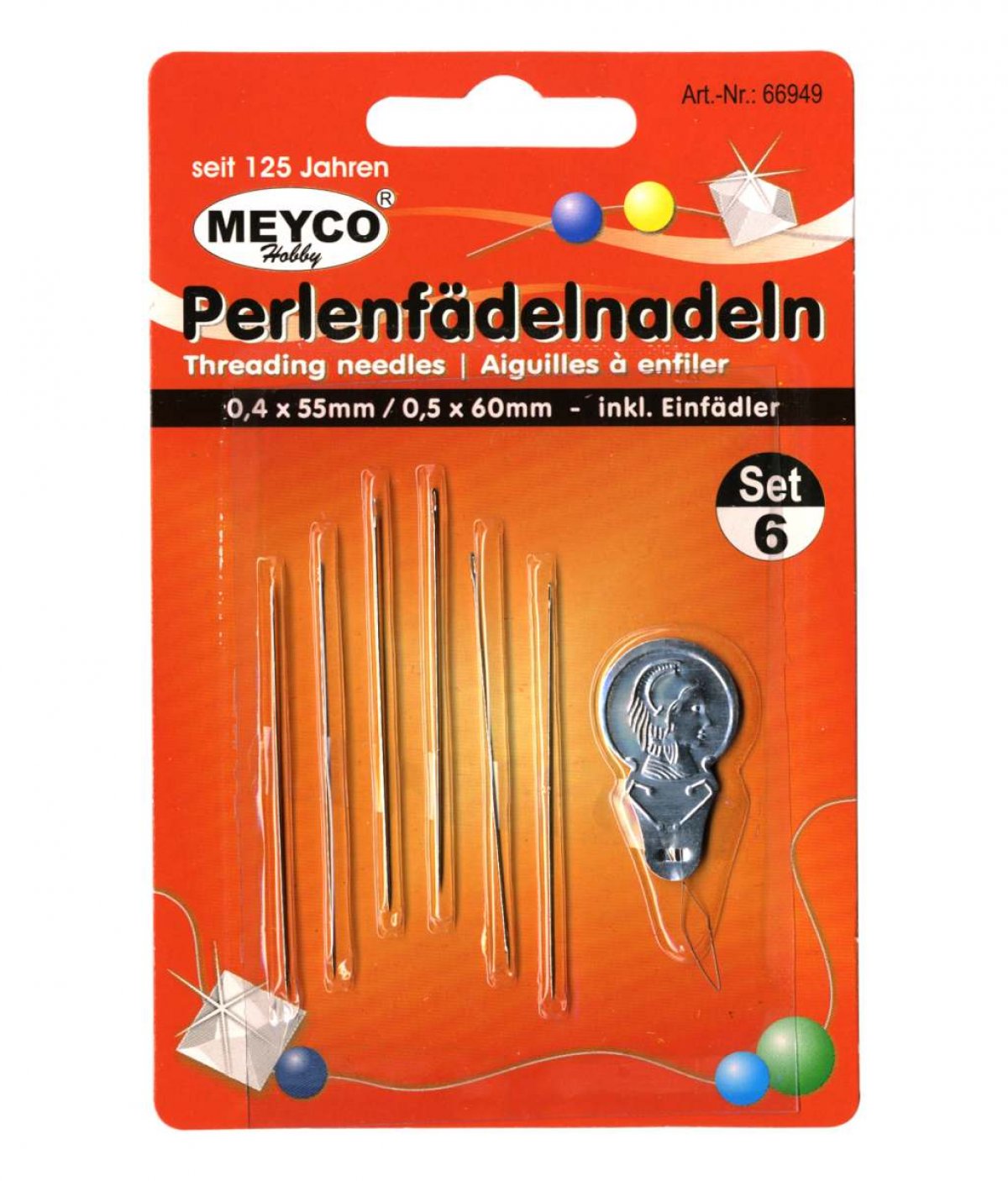 Igle za nizanje perli. U setu je 6 igli dimenzije 0,4x55mm i 0,5x60mm