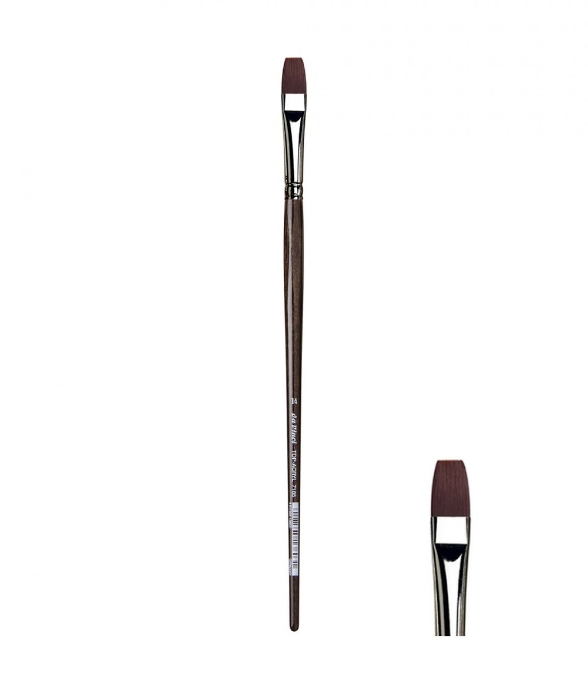 OBLIK: plosnati kist sa crveno-smeđim sintetskim dlakama srednje duljine, dugačka smeđa polirana drška koja ima šest neprimjetnih ravnih dijelova kako bi se spriječilo okretanje kista u ruci i kako bi se kod slikanja ruka što manje umarala. Konusni metalni okrugli prsten obložen niklom. U presjeku metalnog prstena kista, većina Da Vinci kistova ima i za trećinu duže dlake unutar prstena u odnosu na druge koji imaju dlake tek od konusnog dijela prstena. Ovakav tip izrade kista omogućuje dugotrajnost, gipkost i elastičnost.