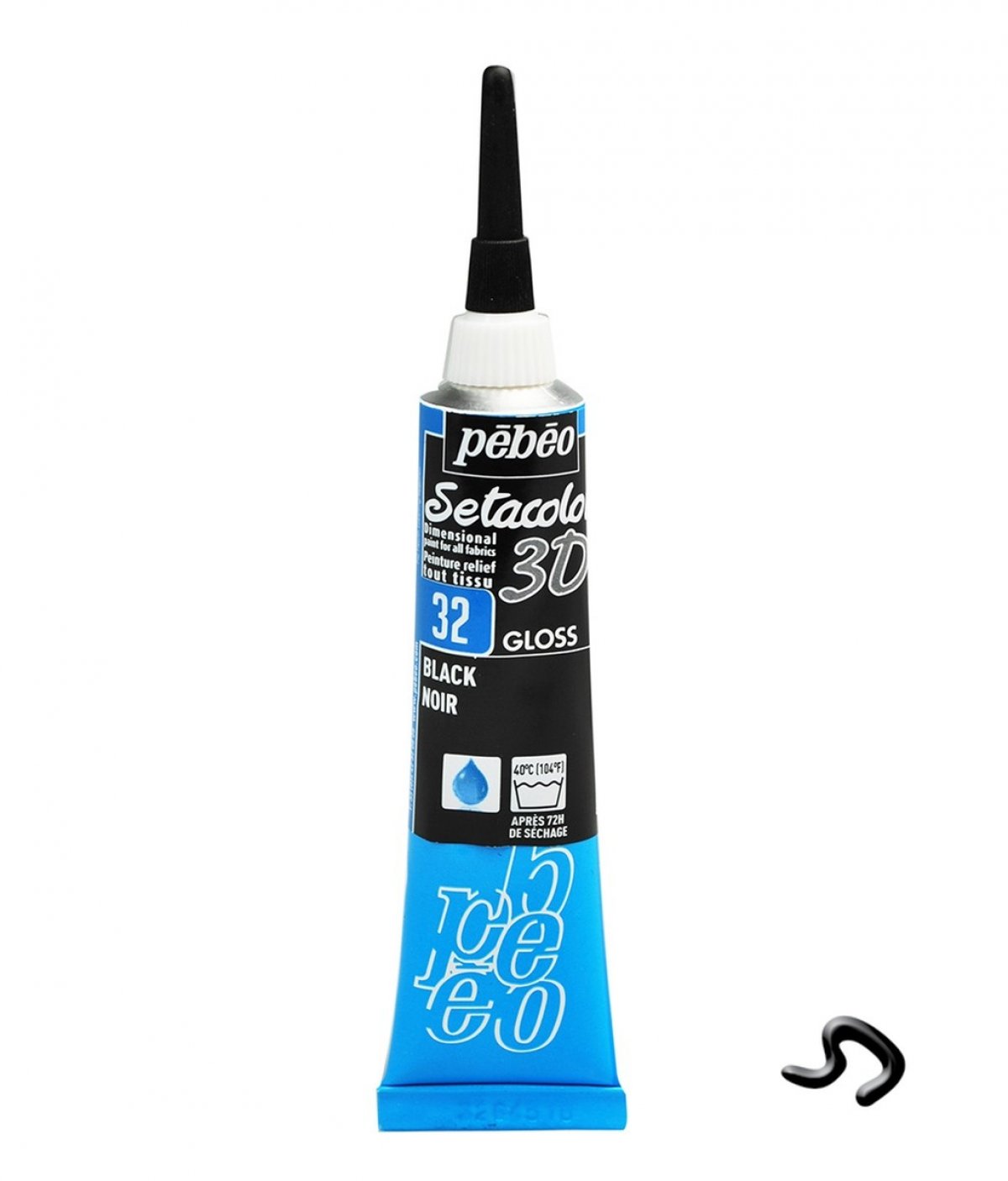 Sjajna kontur pasta za tkaninu koristi se za iscrtavanje tanjih i debljih linija. Nanosi se direktno iz tube na sve tkanine. Daje volumen i sjajni efekt, ne utječe na fleksibilnost tkanine. Suši se 72 sata, nakon sušenja fiksira se glačalom ili fenom. Oslikane tkanine mogu se prati do 40°C.