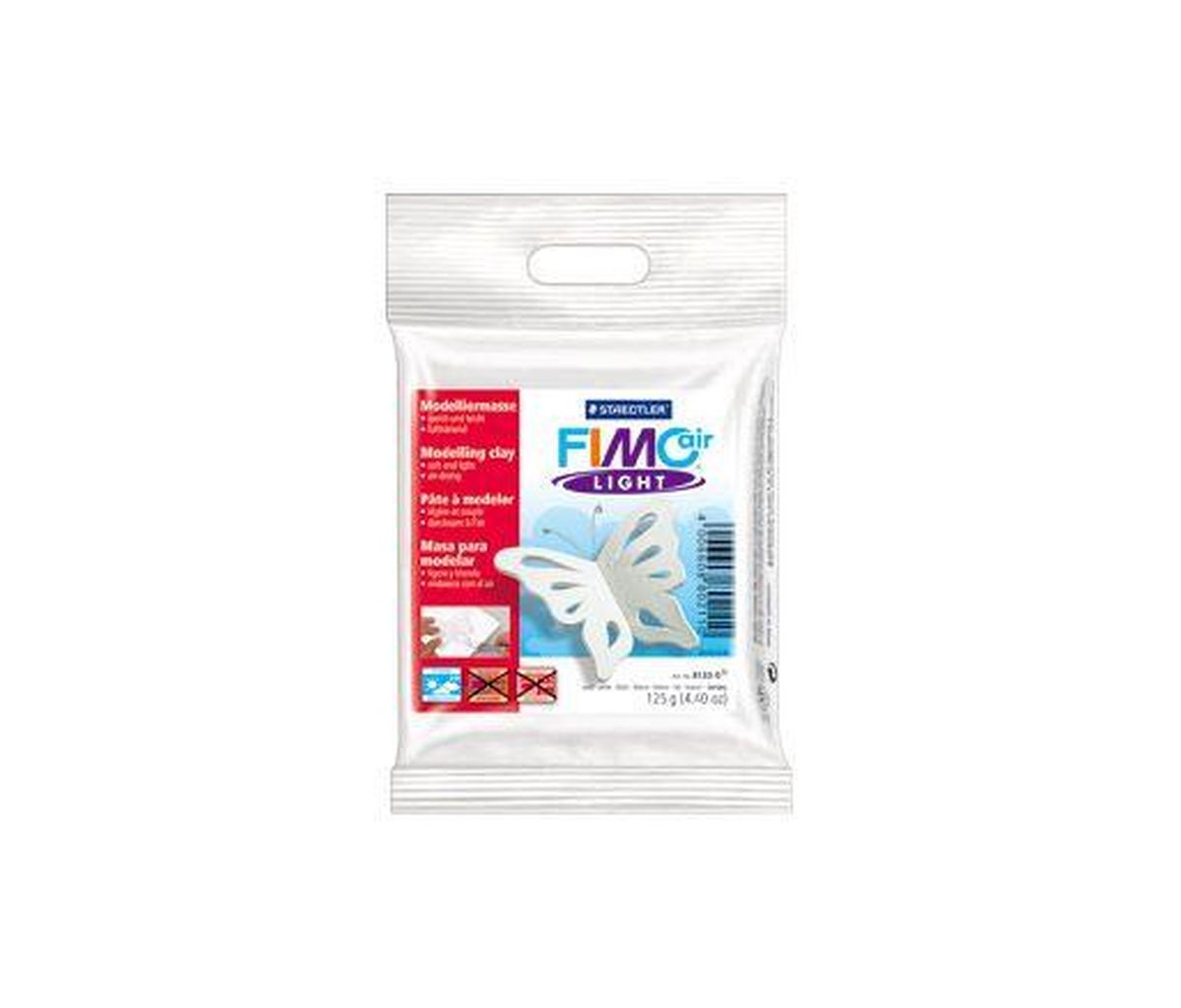 Masa za modeliranje Fimo Air 125g, stvrdnjava se na zraku. Nakon modeliranja i obrađivanja predmet ostaviti na zraku 24 sata. Neiskorišteni dio mase vratiti u ambalažu i dobro zatvoriti da ne dolazi u dodir sa zrakom i da se ne suši. Stvrdnutu masu moguće je bojati sa akrilima, tuševima, temperama, deco bojama za sve površine... Kada se posuši jako je lagan. Idealan je za hobi, školu, umjetnost jer ne zahtjeva pečenje.