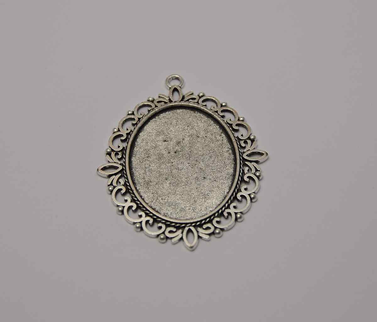 Metalni ovalni medaljon za izradu nakita u srebrnoj boji, dimenzije 5x6cm. Može se patinirati, ukrasiti decoupage tehnikom ili staviti fotografija, puniti Vitrail, Ceramic, Prisma, Moon efektnim bojama. Za 3D efekt, preko željenog motiva ili suhe boje...