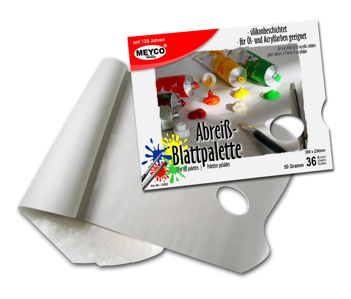 Blok papirnih slikarskih paleta za jednokratnu upotrebu dimenzije 30x23cm. Vrlo jednostavne i praktične, bacaju se nakon korištenja . U bloku je 36 nepropusnih papira od 50 grama obloženih silikonom za sve vrste boje.