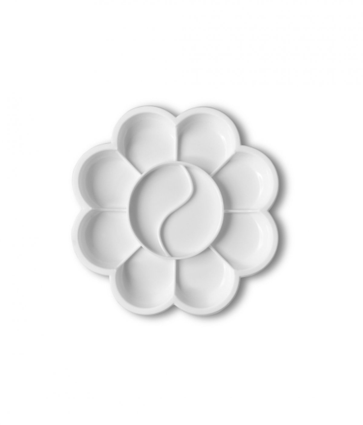 Bijela plastična slikarska paleta sa deset utora za miješanje boja, promjera 8,5cm.