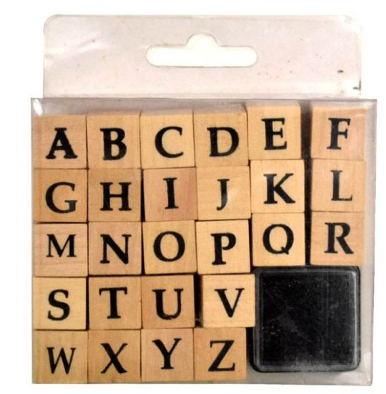 Pečati, slova set, drveni 26 komada. Mogu se koristiti na papiru, kartonu, tkanini, glini... Koriste se za edukaciju, igru ili dekoraciju.