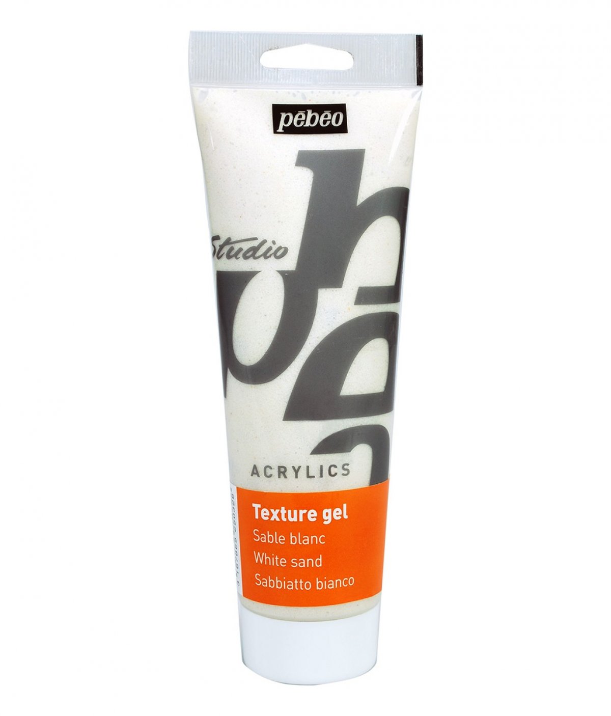 Pješčani gel je medij koji daje bijeli sitno zrnati efekt. Može se koristiti samostalno ili miješati s akrilima. Po potrebi, može se miješati sa vodom, medijima ili gelovima kako bi se dobio tanji nanos, Nanosi se špahtlom ili kistom na slikarska platna