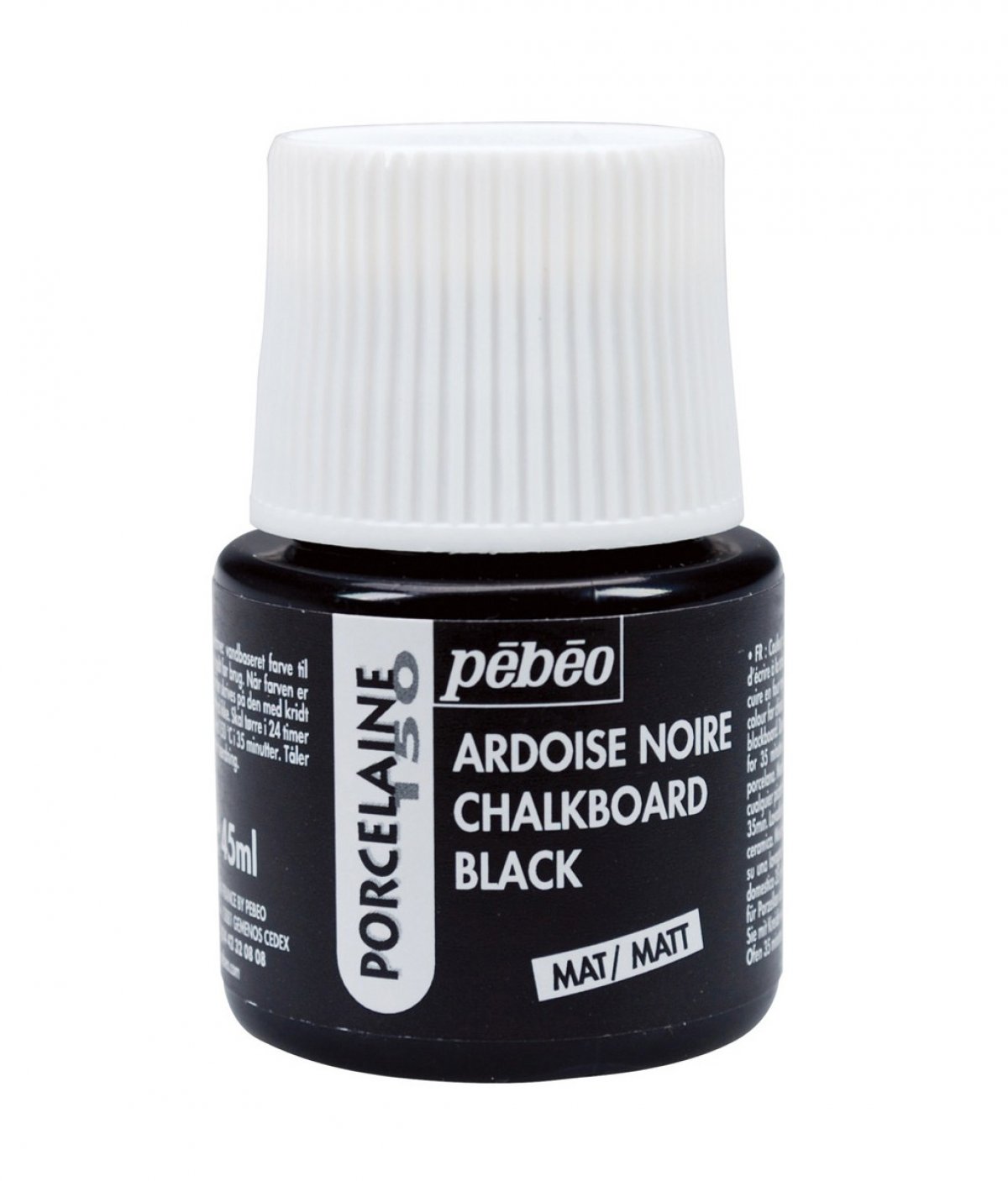Boja za dekoraciju porculanskih predmeta za efekt školske ploče. Može se nanositi kistom, valjkom ili spužvicom. Nakon nanošenja boju treba osušiti 24h te nakon toga paliti u pećnici 35min na 150°C.