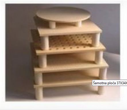 Šamotna ploča, veličine 49x44x1,7cm izrađena je od šamotirane gline te podnosi temperature do 1300°C. Koristi se za gradnju katova u pećima za keramiku. Ploču ne šaljemo dostavnom službom zbog mogućnosti oštećenja.