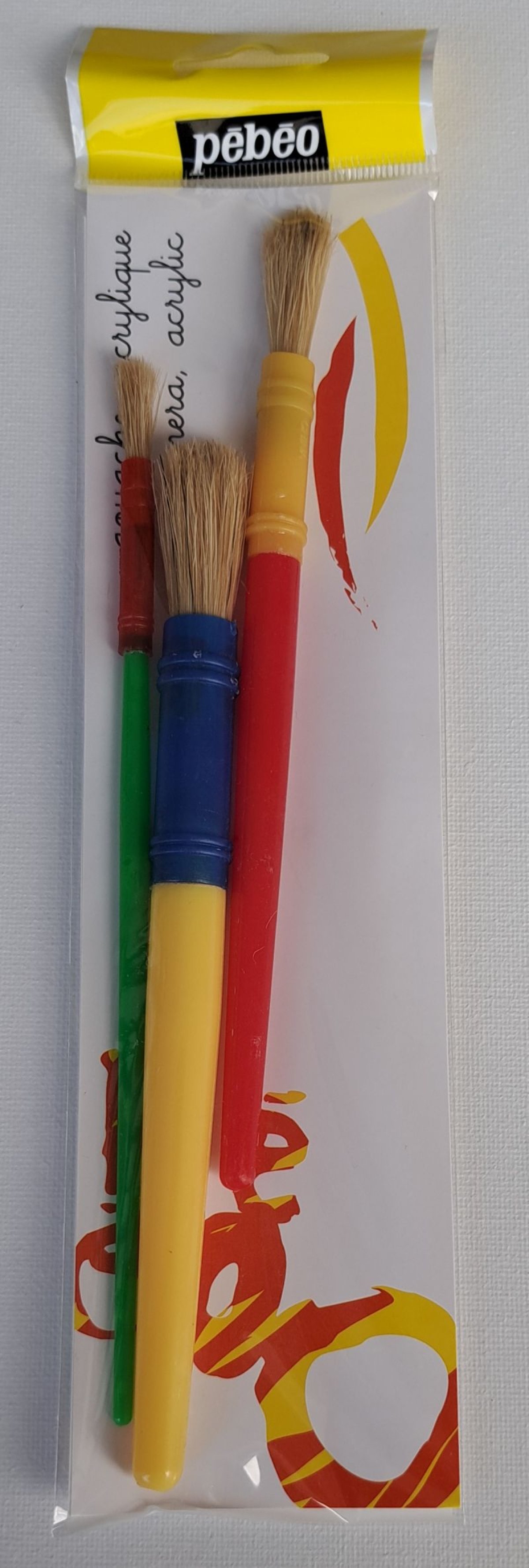 Set dječjih kistova od 3 kista, mali, srednji i veliki okrugle dlake. Kistovi se odlikuju čvrstom dlakom sa prosječnim zadržavanjem, okrugla dlaka kista služi za oslikavanje detalja vrhom kista. Linije se mogu podebljati pritiskom na kist.