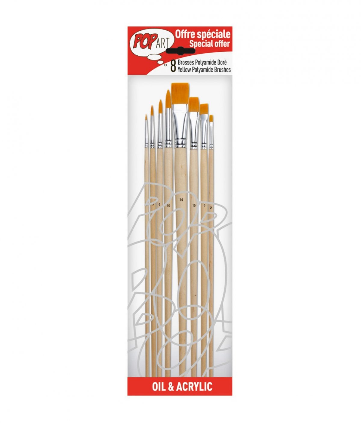 Kistovi s mekanom i gustom dlakom, koriste se za hobi i slikarske tehnike (ulje, akril, tempera...). Set sadrži 4 plosnata kista vel. 2, 6, 10, 14 i 4 okrugla kista vel. 0, 3, 6, 10.
