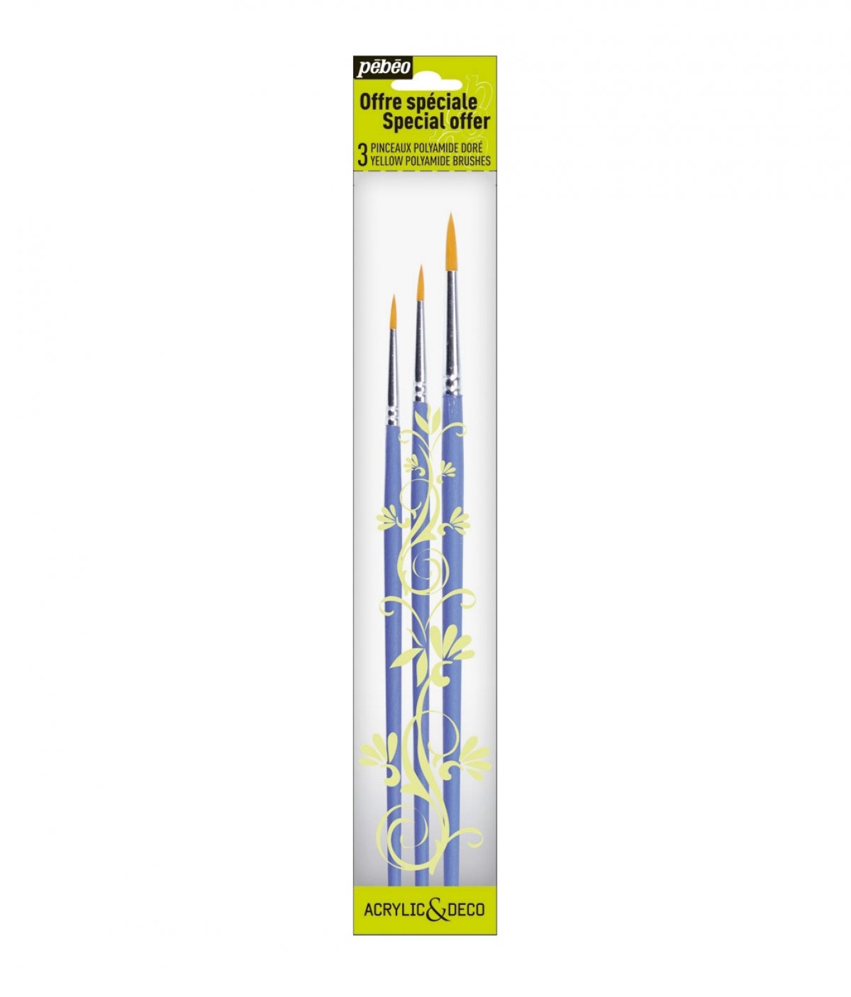 Kistovi s mekanom i gustom dlakom koriste se za sve hobi tehnike. Set sadrži 3 okrugla kista vel. 000, 2, 6.