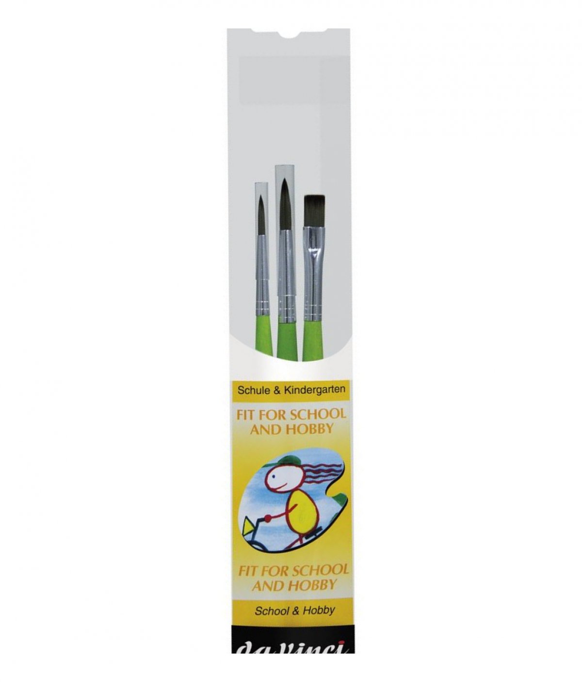 Set hobby kistova School and hobby za školu, vrtić te za sve hobi i dekorativne tehnike. Vrlo stabilni, kistovi s finim rubovima i tankim vrhom od sive vrlo elastične sintetske dlake. Za slikanje na svim površinama; drvo, papir, karton, tkanina, platno, keramika, staklo...