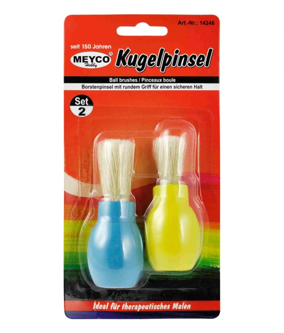 Kistovi od sintetske dlake za nanošenje svih vrsta boja s posebno osmišljenom drškom koja je prilagođena za terapeutske svrhe. Zbog svoje zaobljene lakirane drške, dobro sjeda u ruci i lako se s njima može rukovati. U setu su 2 kista promjera 3,3cm dužine 8,5 i 9cm.