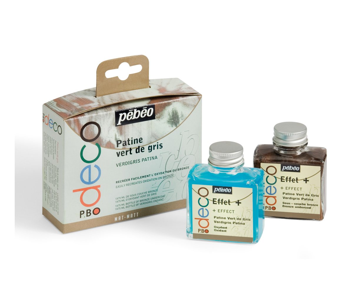 Dvokomponentni set za stvaranje atraktivnih efekata oksidacije bronce. Pogodno za sve površine: gips, glinu, drvo, nehrđajući metal, staklo, karton itd. Set sadrži 75 ml osnovnog brončanog premaza i 75 ml verdigris oksidanta.